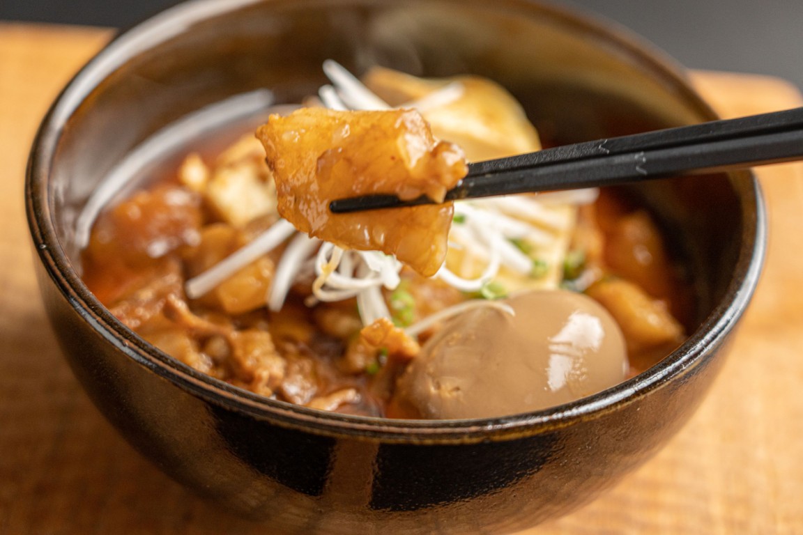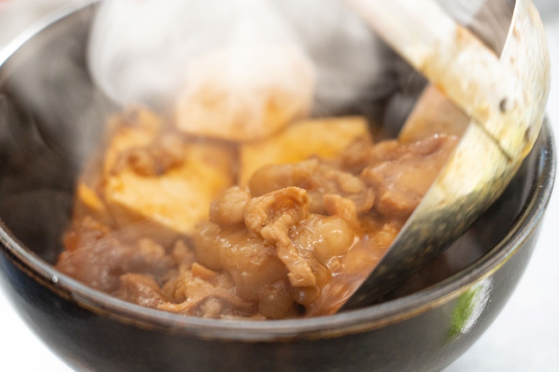 まろやかで甘みのあるタレで牛もつをとろとろになるまで煮込んでいます。