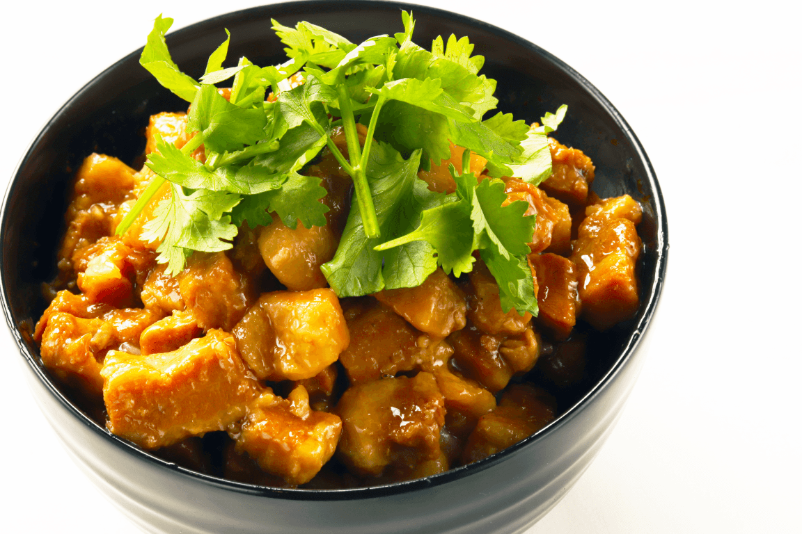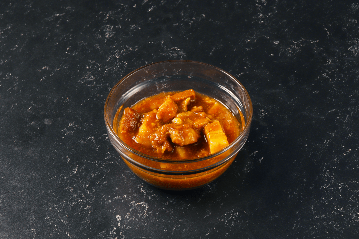 本商品は、細かくブロック状に切った豚バラ肉をじっくり煮込み、八角を始めとした数種類のスパイスを加えて仕上げています。