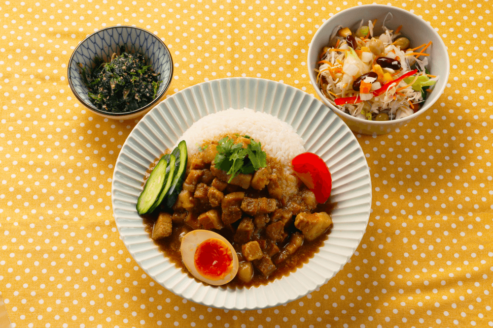 さらに、通常2-3時間かかる煮込み時間と肉を切る、炒めるなどの調理工程を大幅に削減し、ご飯にかけ、パクチー、煮卵、などを乗せるだけでルーローハン丼としてそのまま提供できる状態になっています。
