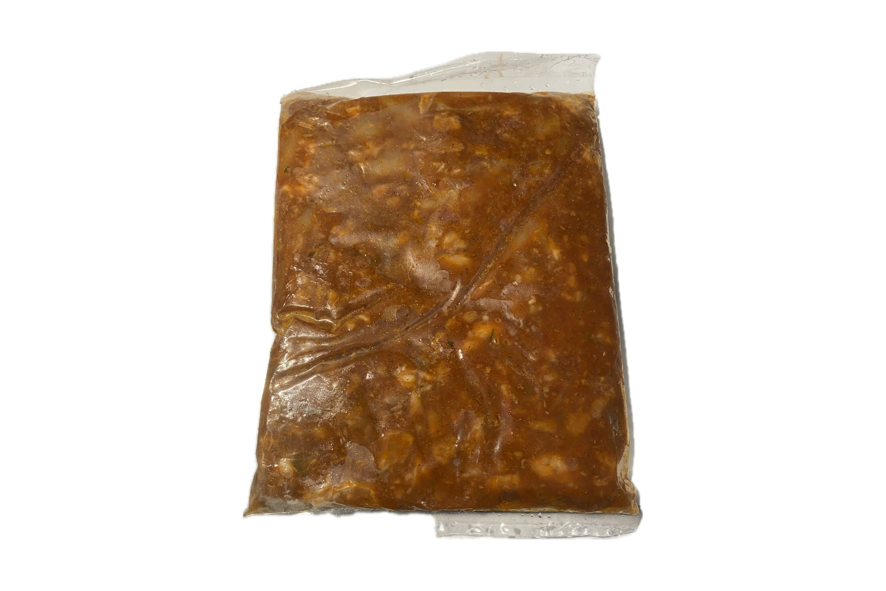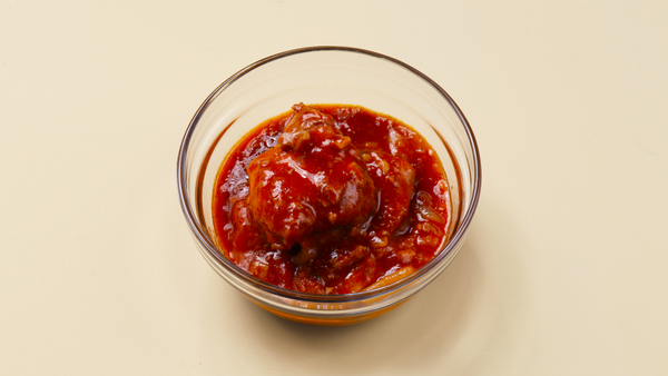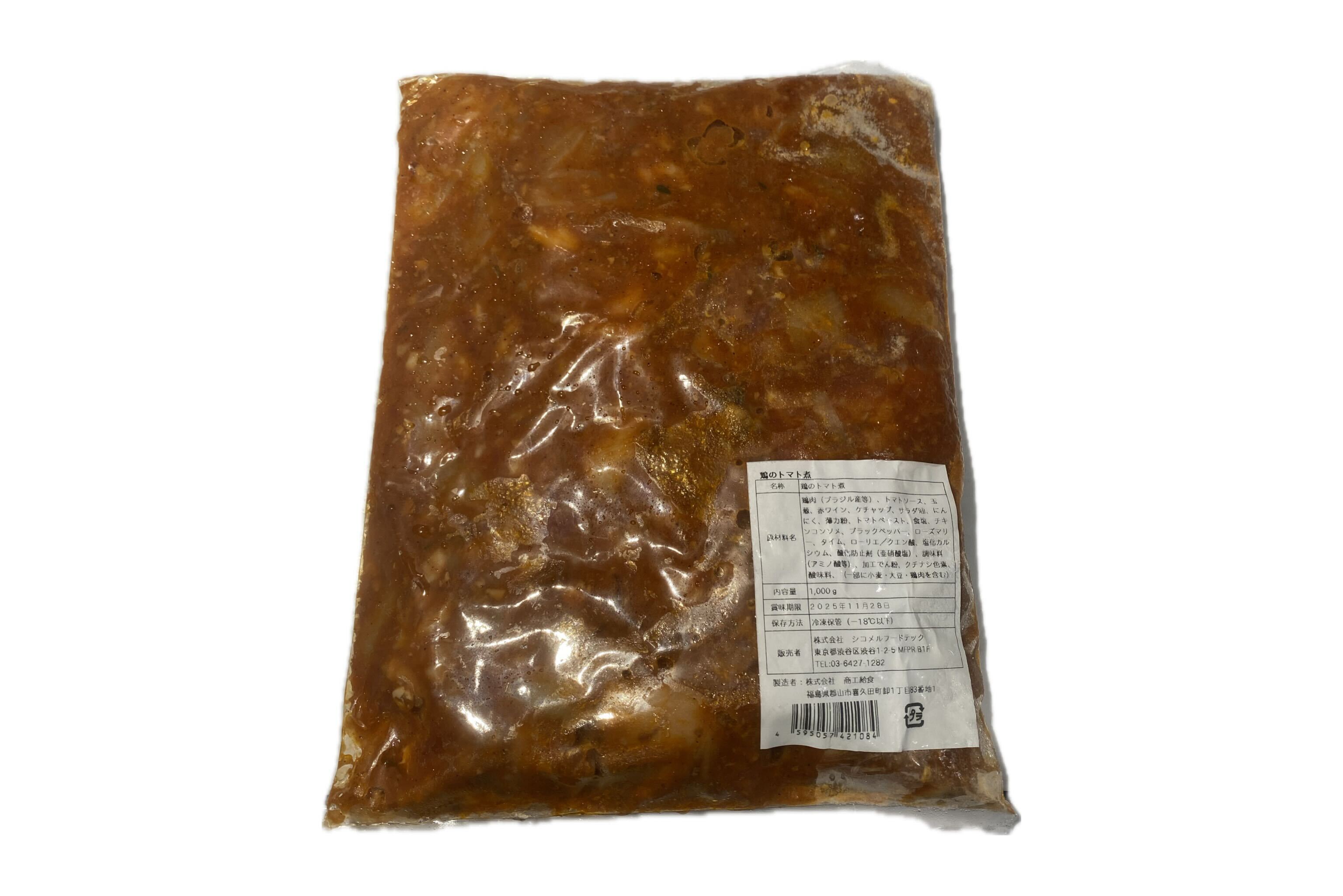 | 原材料 | 鶏肉 (ブラジル産等)、トマトソース、玉葱、赤ワイン、ケチャップ、サラダ油、にんにく、薄力粉、トマトペースト、食塩、チキンコンソメ、ブラックペッパー、ローズマリ、タイム、ローリエ/クエン酸、塩化カルシウム 酸化防止剤(亜硝酸塩)、調味料(アミノ酸等)、加工でん粉、 クチナシ色素、酸味料、(一部に小麦・大豆・鶏肉を含む) |