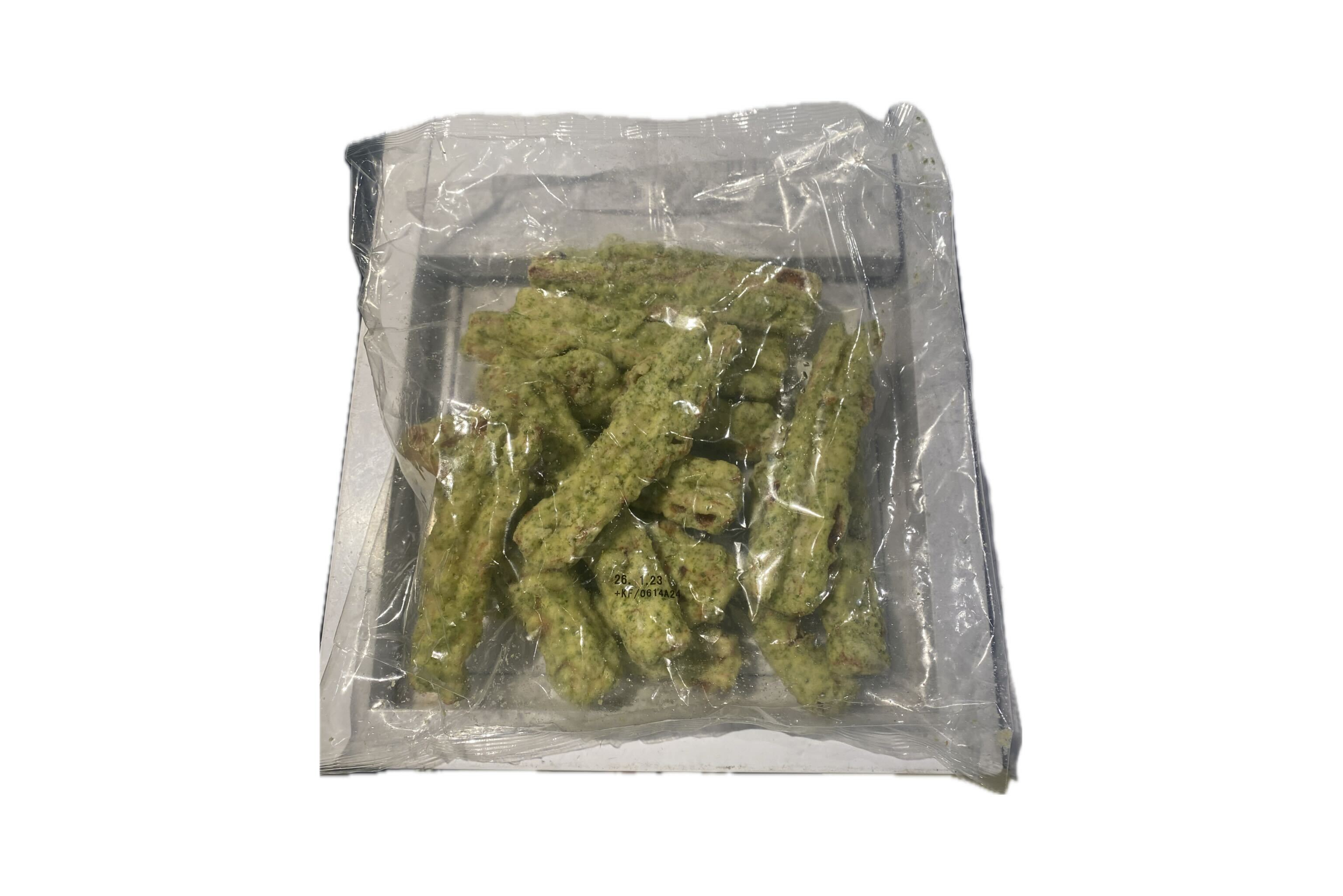 | 調理方法 | (自然解凍) 室温20℃ 約2時間 (目安) 解凍後そのままお召 し上がりいただけます。 ※季節・室温によって異なります。 (レンジ加熱) 600W 約2分 (3本の場合の目安) 凍ったままの商品を袋から取り出し、 耐熱容器に移し替えラップ をせずに加熱して下さい。 ※機種本数により多少異なります。 (油調) 170℃約1分30秒(目安) 凍ったまま商品を揚げて下さい。 ※一度に入れ過ぎると衣剥がれや、 揚げムラの原因になりますの でご注意下さい。 |