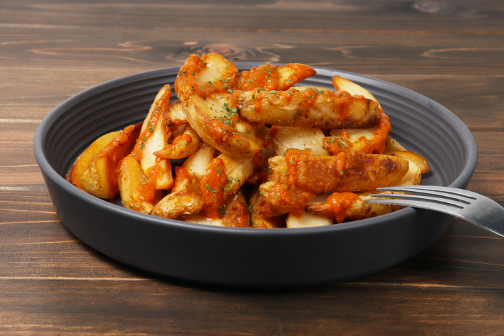 スペインのバル文化で親しまれる“パタタス・ブラバス”をベースにした、ほんのり辛くてクセになるトマトソースです。