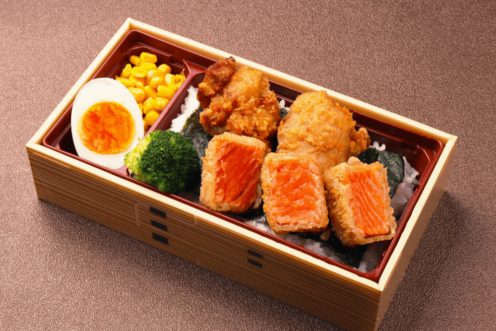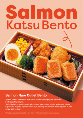 都内のキッチンカーでは(客単価1,000円〜1,999円)、「トラウトサーモンフライ」を使用した「サーモンのレアカツ海苔弁当」が1,200円で提供されています。