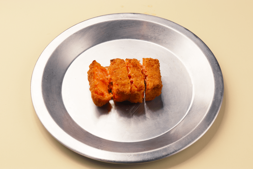 タルタルソースを添えて試食しましたが、揚げ時間によってサーモンの食感が大きく変わることを確認しました。