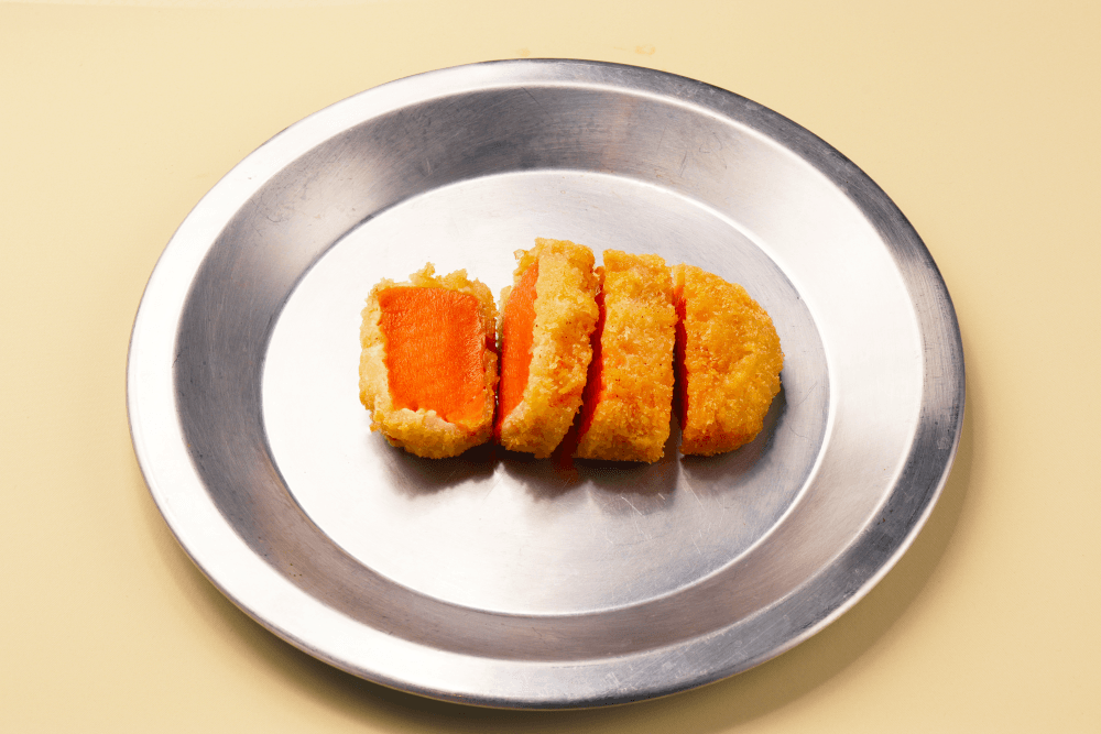 商品写真6枚目(3分):外はしっかりと揚がり、中は適度に火が通った状態です。レア感を抑え、しっかりとした食感を提供したい場合に最適です。