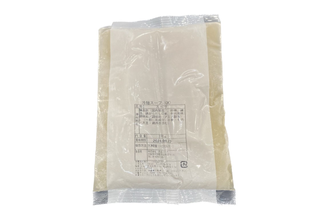 冷麺用のスープです。少し甘みのあるベーシックなスープのため、お酢やレモン、コチュジャンなどを足してアレンジしやすくなっております。